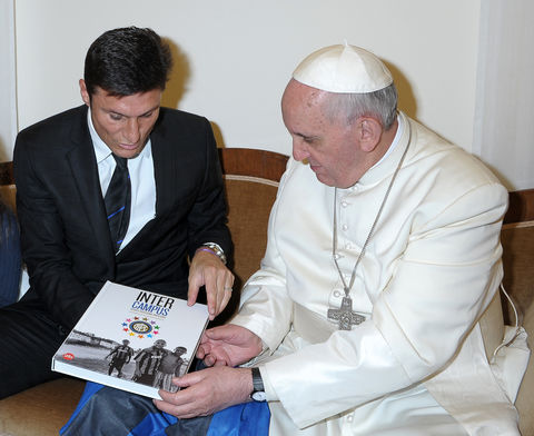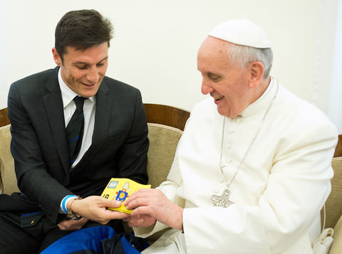 Zanetti w prezencie podarował Papieżowi Franciszkowi, który jest wielkim kibicem piłki nożnej i zespołu San Lorenzo swoją koszulkę z numerem 4, opaskę kapitańską z flagami Włoch, Argentyny i Watykanu oraz inicjałami Papieża, książkę poświęconą Inter Campus ze specjalną dedykacją Massimo Morattiego, tabliczkę Fundacji PUPI oraz proporczyk z herbem Papieża Franciszka.