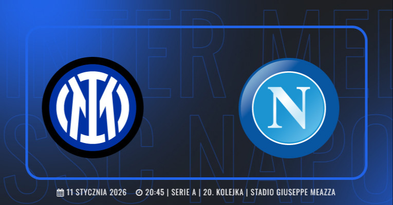 Po środowej wygranej z Parmą w Serie A, Inter nie zwalnia tempa i już w niedzielę 11 stycznia o 20:45 na San Siro zmierzy się z Napoli w ramach 20. kolejki ligi. Będzie to starcie na szczycie: drużyna Cristiana Chivu prowadzi w tabeli, natomiast Napoli zajmuje trzecie miejsce, tracąc do lidera cztery punkty.